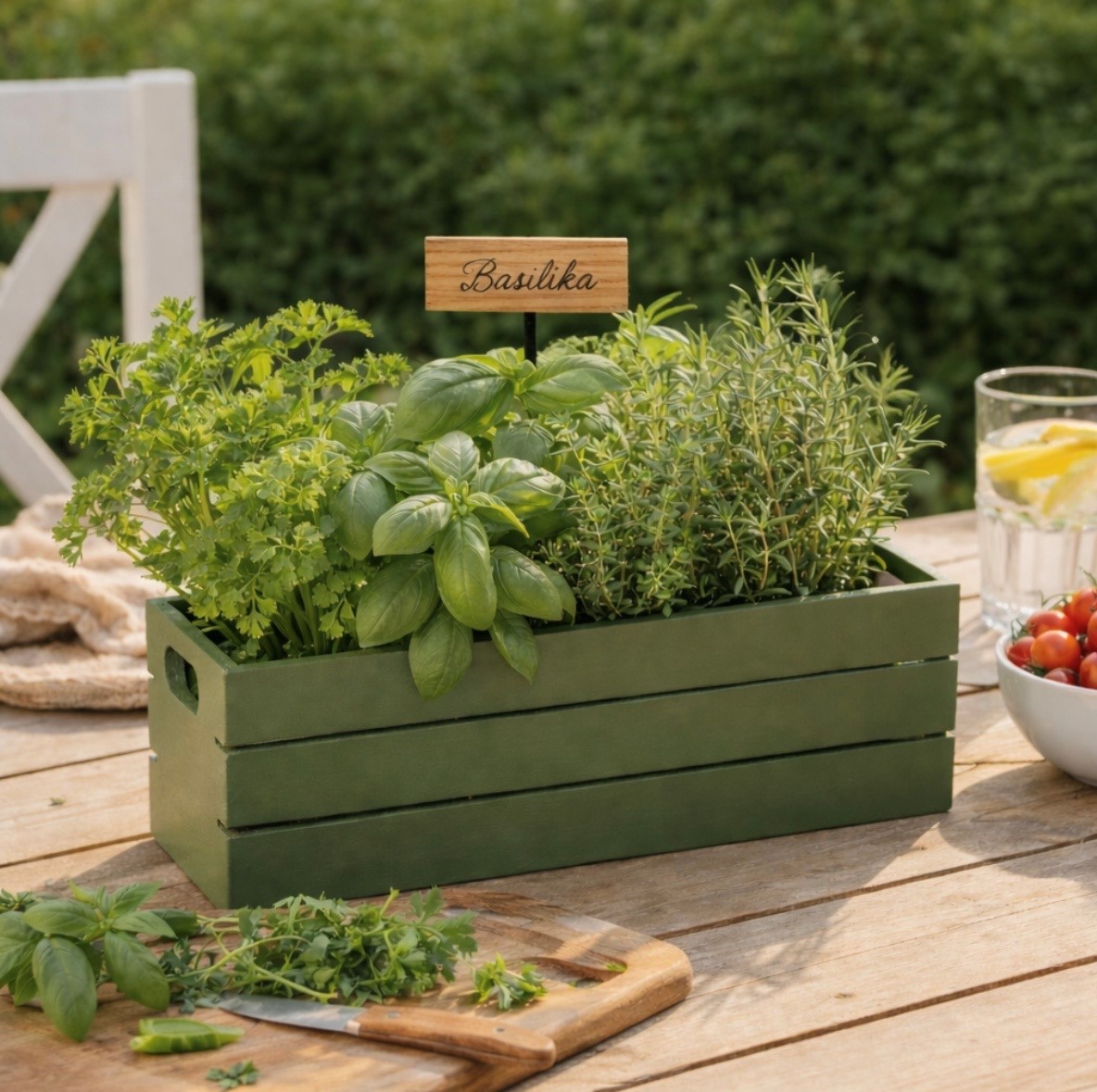 Pinne i smide. 8 olika kryddor: Basilika, Dill, Gräslök, Mynta, Oregano, Persilja, Rosmarin, Timjan
